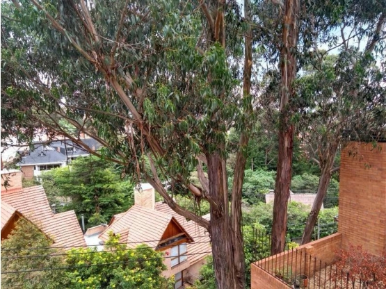 (MH) Vendo Hermosa casa en Bosque de Pinos. El barrio más verde, tranquilo, lleno de naturaleza y seguro de Bogotá 178 M2 más 100 M2 de terraza con vista a bosque nativo, y corredor con cañada y riachuelo, bosque al frente. Casa de 3 niveles, Sala con balcón y chimenea de leña y alcohol, comedor con balcón , cocina remodelada con comedor auxiliar, baño del servicio, baño social con estuco veneciano, habitación principal con waking closet, baño con tina,chimenea de leña y balcón 2 habitaciones cada una con terraza.hooby room muy amplio y estudio. 2 parqueaderos independientes, 2 depósitos. El conjunto tiene cancha de squash, basquetbol salon comunal, parque infantil con saltarin y rodaderos.